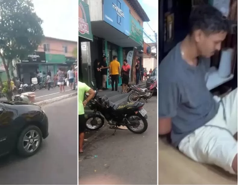 Ao entrarem na loja e anunciarem o assalto, um dos suspeitos foi surpreendido por um cliente, que é policial militar e estava à paisana no estabelecimento.