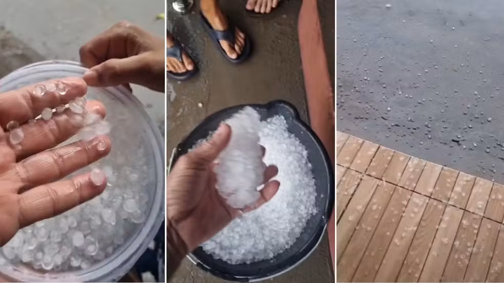 Granizo caiu por cerca de 10 minutos e surpreendeu moradores. Inmet explica que o fenômeno é comum no Cerrado durante a transição entre o período seco e o chuvoso.