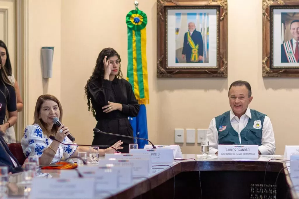 A presidente da Assembleia Legislativa do Maranhão, deputada Iracema Vale (PSB), acompanhada do deputado Jota Pinto (Podemos), participou do ato de assinatura do decreto que regulamenta o Programa Maranhão Sem Queimadas, proibindo o uso de fogo no estado de 1⁰ de agosto a 30 de novembro. O evento aconteceu no Salão de Atos do Palácio dos Leões, nesta sexta-feira (19).