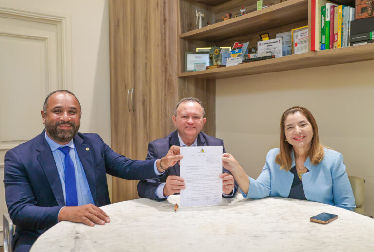 A assinatura contou com a presença da presidente da Assembleia Legislativa, Iracema Vale, e do deputado estadual Roberto Costa.