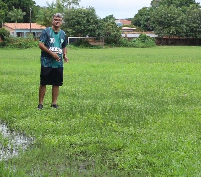 Em vídeo, Mulato mostrou o campo da Arena Napoli, tradicional campo da região do Miritiua, totalmente alagado.