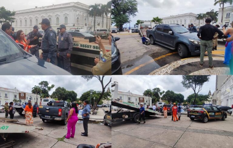 Mesmo advertida pelos agentes da Secretaria Municipal de Trânsito e Transportes (SMTT), Vanderly Monteles se recusou a tirar o carro do local e começou a discutir com os guardas.