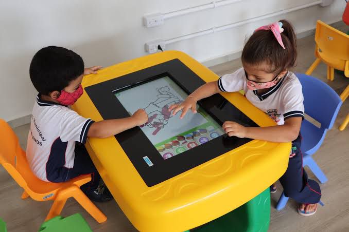 A gestão realizou a aquisição de “Mesinhas Digitais”, que aprimora o desenvolvimento infantil.